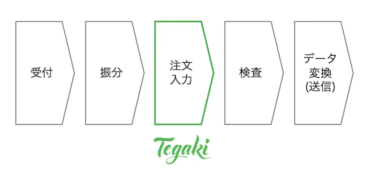 まず「QOSIS」導入企業様の取引先からFAX経由で注文を受信した後、注文書をフォーマットごとに振り分けます。そのあと注文内容のデータ入力を行います。この工程で「Tegaki」を活用しています。