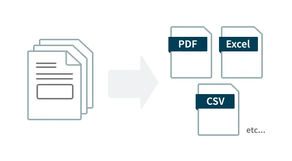 読み取った結果をExcelやCSVファイル、サーチャブルPDF等で出力します。文書毎に別ファイルにしたり、1つのファイルに結合して出力することも可能です。